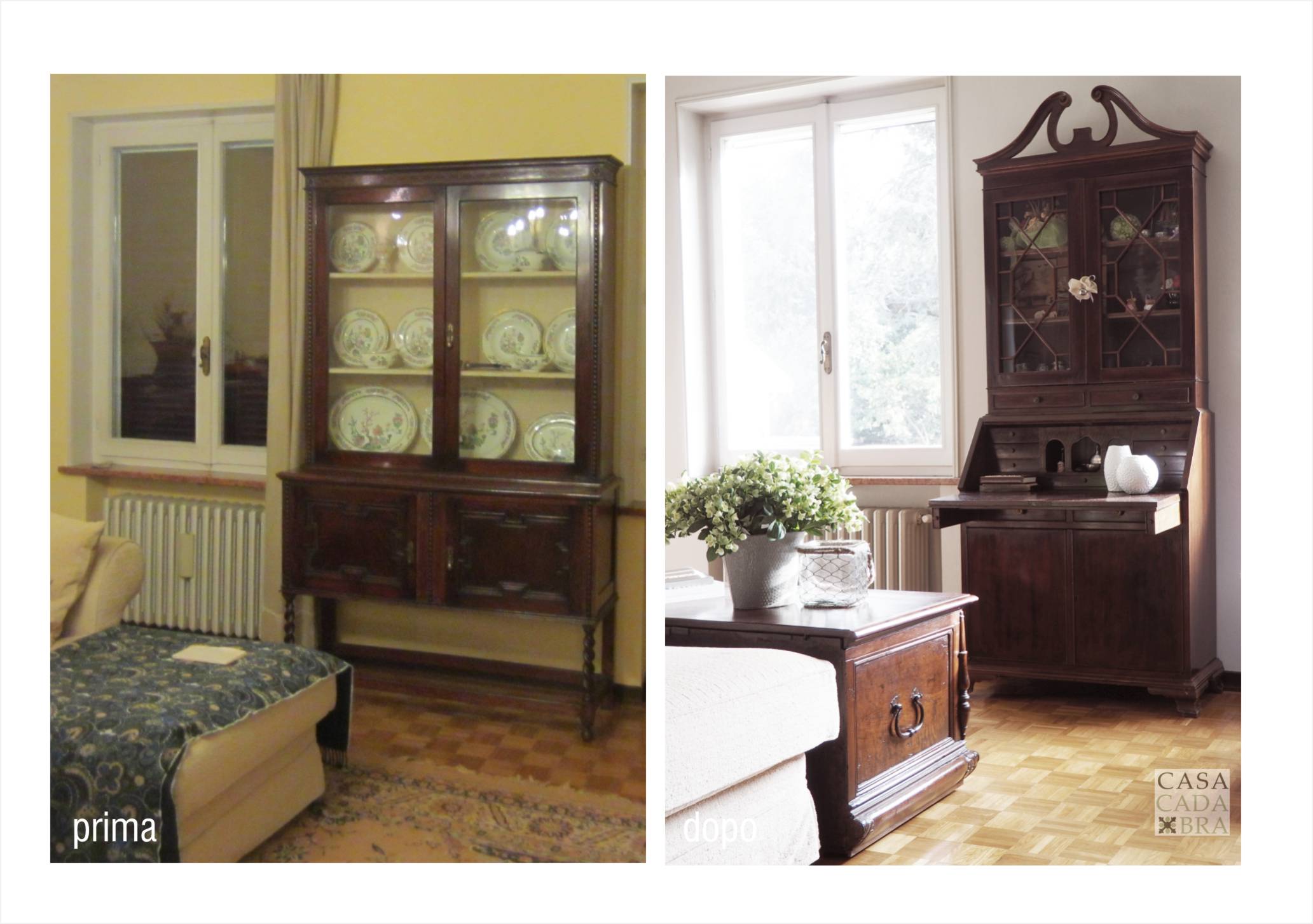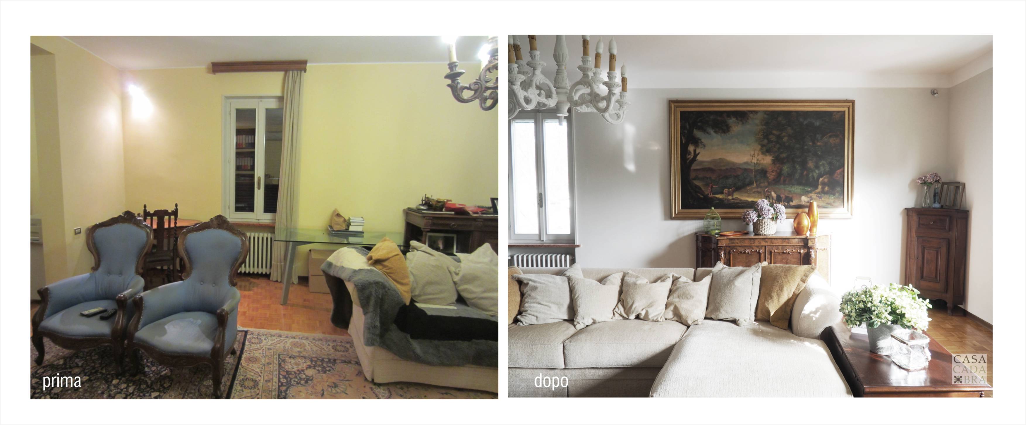 Obiettivo del relooking è stato quello di definire le destinazioni d’uso e valorizzare al massimo gli ambienti. I moodboard proposti da Casacadabra hanno dato ai proprietari la possibilità di immaginare come i vari ambienti, penalizzati da tinteggi datati e da una disposizione un po’ caotica degli arredi, potessero letteralmente cambiare volto acquisendo un’aria elegante e rilassata. Le foto del Prima-e-Dopo della gallery danno la misura di quanto anche interventi di poco impatto, come un semplice tinteggio, possano dare nuova magia ad un ambiente.