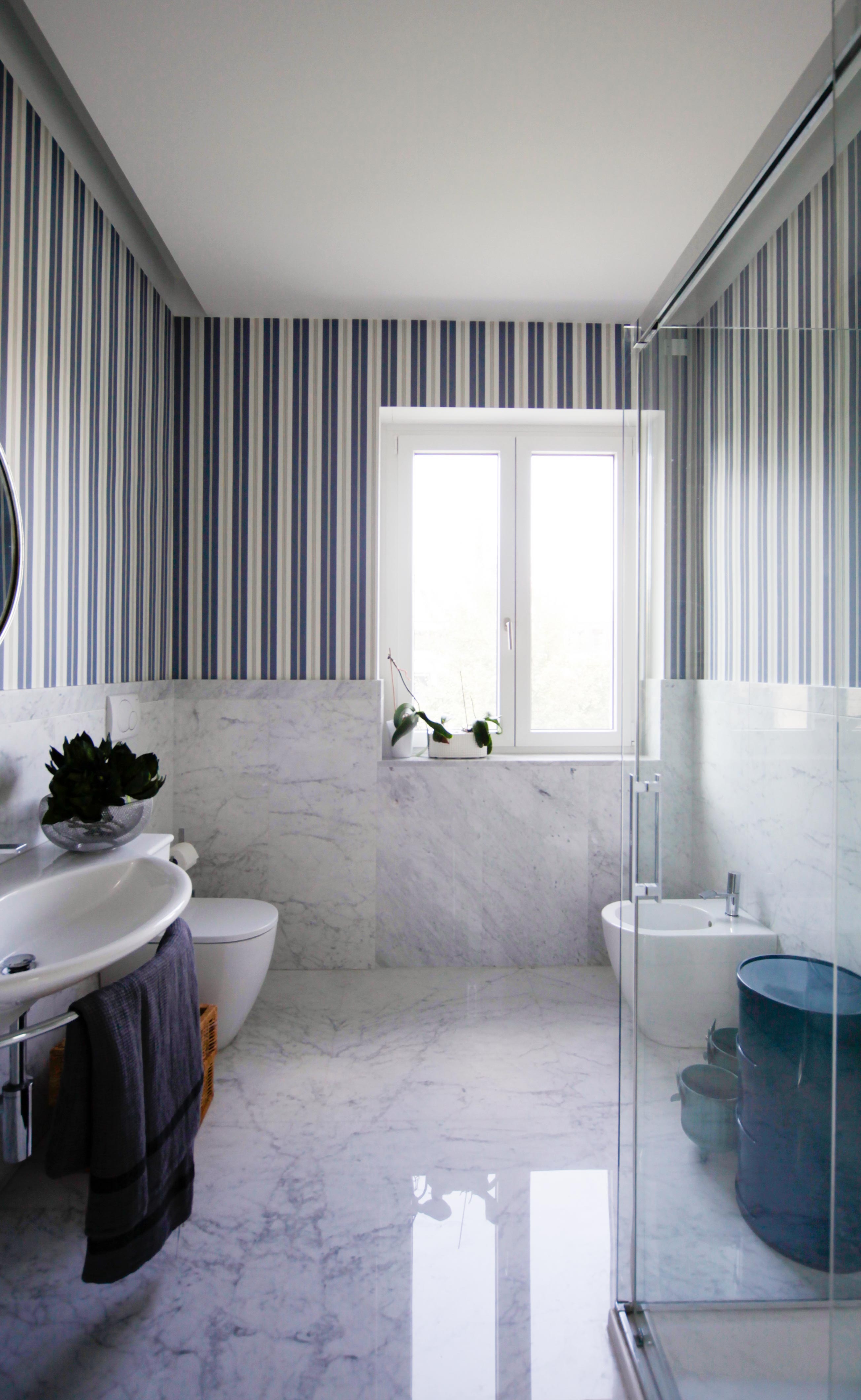 La bella casa da noi progettata a Lemingagno non era solo uno spazio dedicato alla vita adulta; i proprietari di casa avevano infatti tre ragazzi con le loro esigenze, la loro personalità e l’esigenza di avere uno spazio di liberà. Le camere sono state arredate e progettate per essere trasformate nel tempo. I bagni, invece sono degli spazi ampi e delicatamente decorati per rispettare le belle ed importanti lastre di marmo che la casa già presentava.
