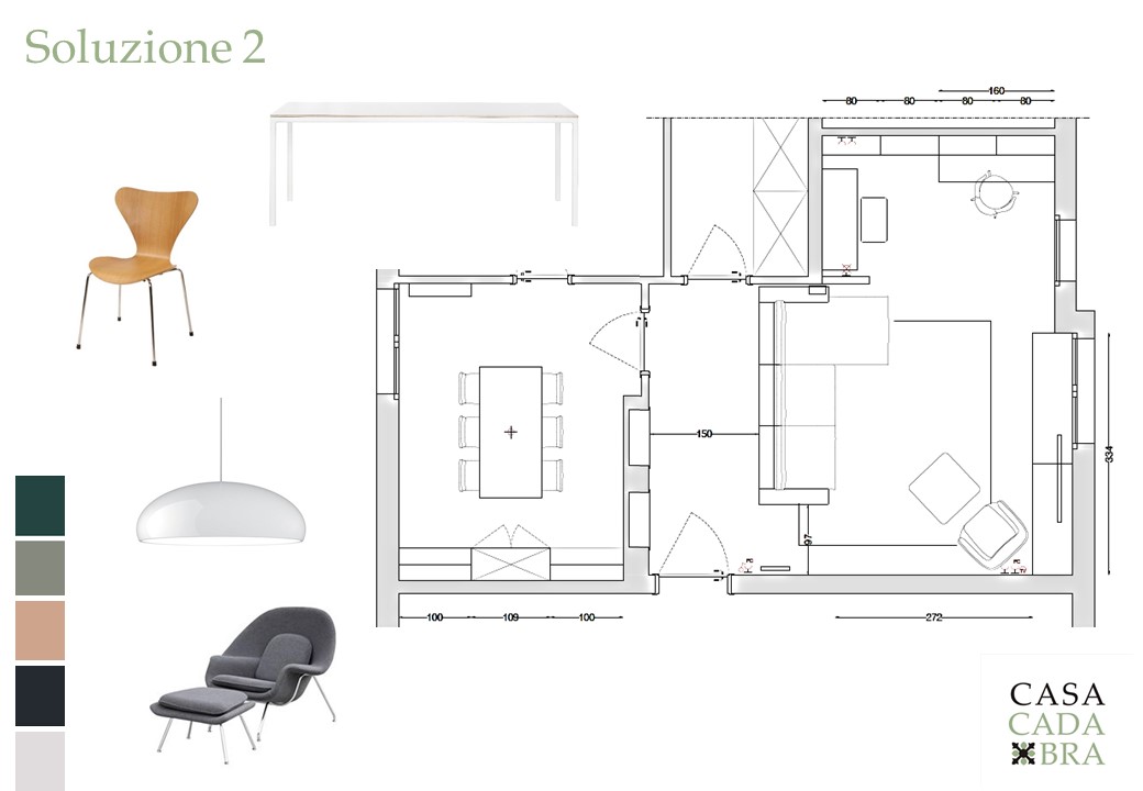 Le parte della casa oggetto del progetto è la zona giorno, composta da sala da pranzo e soggiorno con angolo studio.
